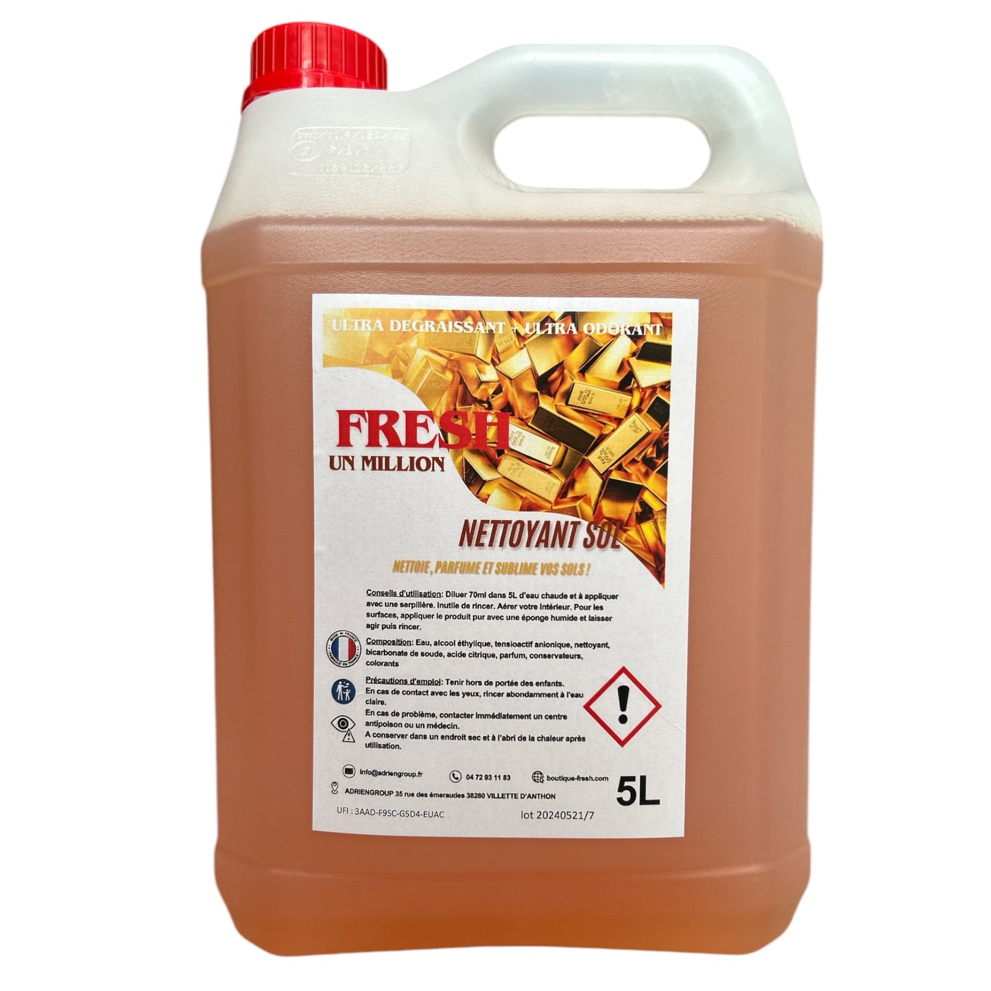 Apportez une sensation de luxe et d'élégance à votre intérieur avec notre sol nettoyant parfum One Million. Sa formule nettoie et dégraisse efficacement tous vos sols, tout en diffusant un parfum riche et raffiné aux notes chaudes et épicées, créant une ambiance sophistiquée et intemporelle dans votre maison.